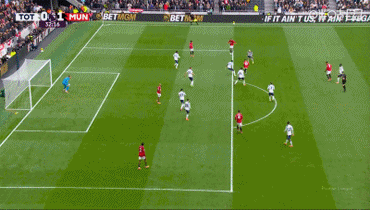 乌加特本可犯规阻止热刺的进攻,却没有这么做,主队的乌多基得以左路传中,马蒂斯·特尔禁区内接球转身,摆脱德里赫特后射门,皮球折射后入网,热刺1-1扳平曼联。